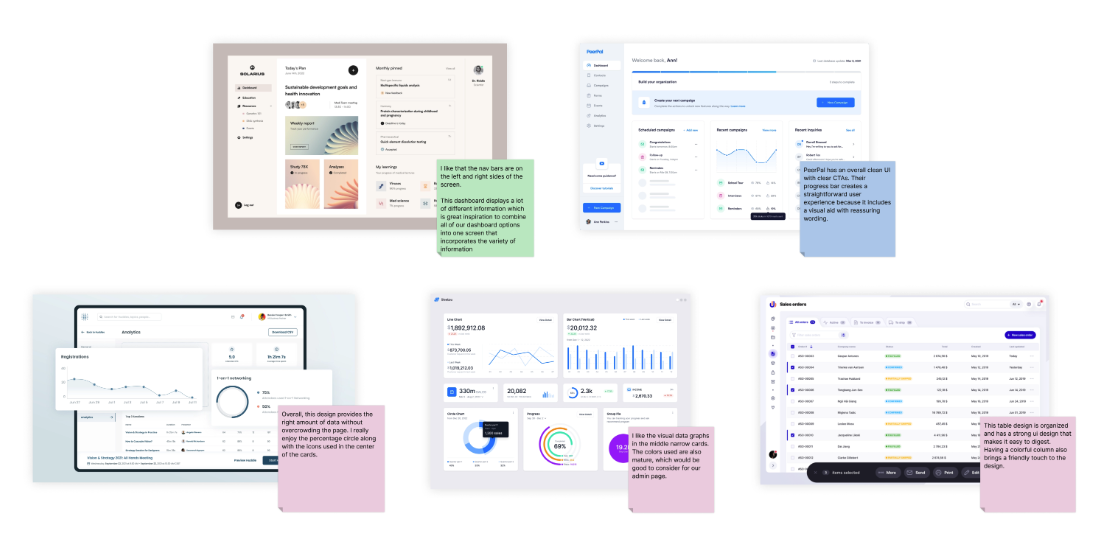 Before creating high fidelity designs, my team and I conducted research on potential design inspiration and discussed how we could incorporate various features into our design. As the analytics page was a new addition, I explored various websites and designs that showcased clear and meaningful data, intuitive icons, and a thoughtful use of color.